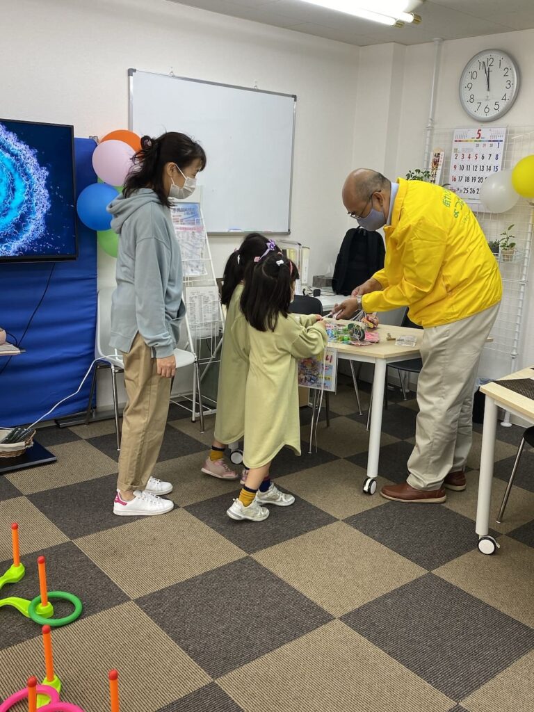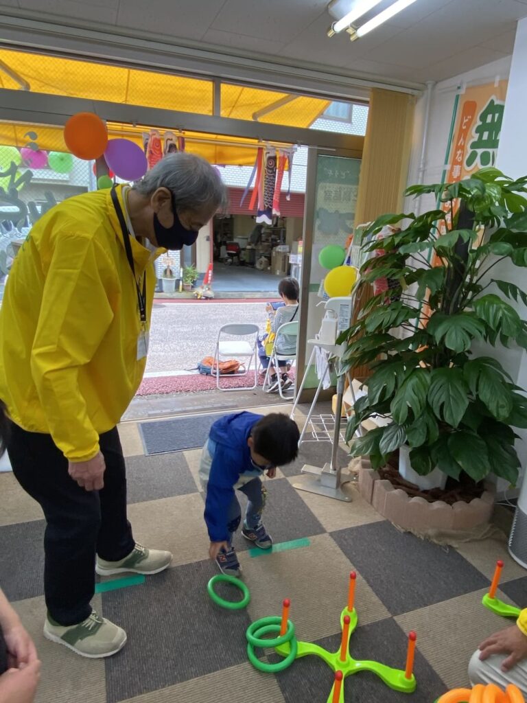 コロナ禍でなかなか遊びに行けない子供さんに楽しんでもらおうと、輪投げ大会を開催。たくさんの親子連れのみなさんにこどもの日を愉しんでいただきました。