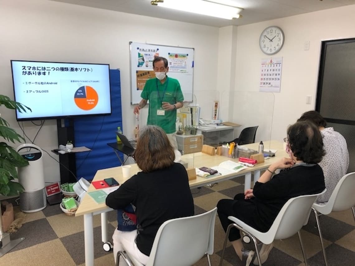 まつばらんどでは毎月1回、(第2週火曜日)に「まつばらんどセミナールーム」で初心者を対象としたスマホ講座を開催している。受講者はほぼシニアが中心で、スマホを持っている人であれば誰でも受講できる。