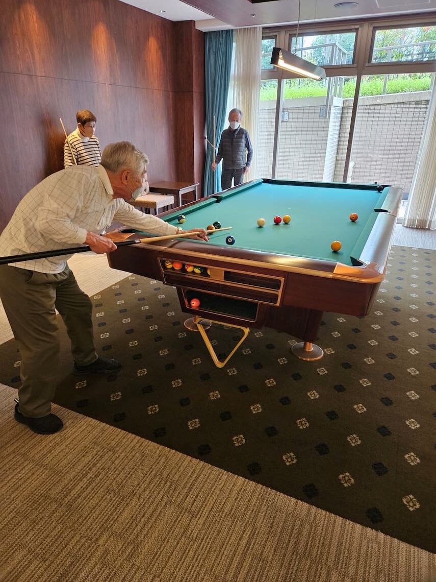 ビリヤードは、遊び人が照明の暗いところでやるゲームと思って方が多いようですが、これも最近ではシニアが一つのスポーツとして楽しんでいて人気が広まっているようです。