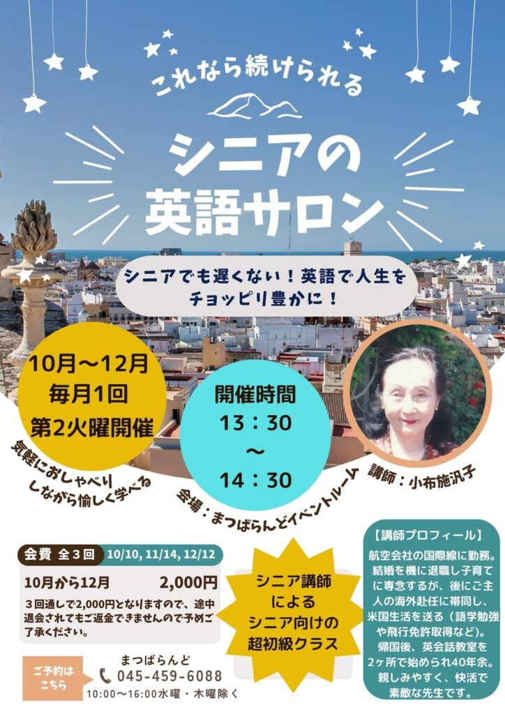 本日(火)、英語サロン講師の小布施さんにお目にかかったので、英語サロンのお話をお聞きしました。以下、小布施さんのインタビューを私がまとめたものです。